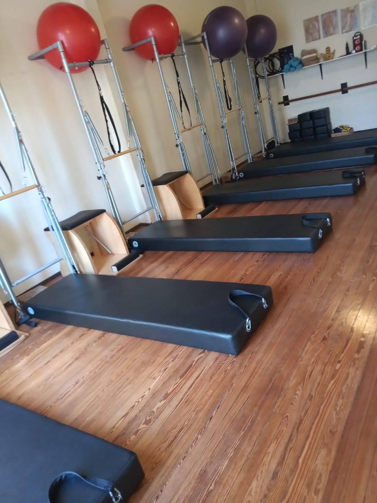 Contamos con wundas y torres (o unidades de pared, adaptación de los cadillacs) que proponen resistencia mediante el peso de los resortes. Al igual que en las clases de suelo, organizamos por niveles los grupos para ofrecer clases variadas y con el desafío adecuado a l@s alumn@s